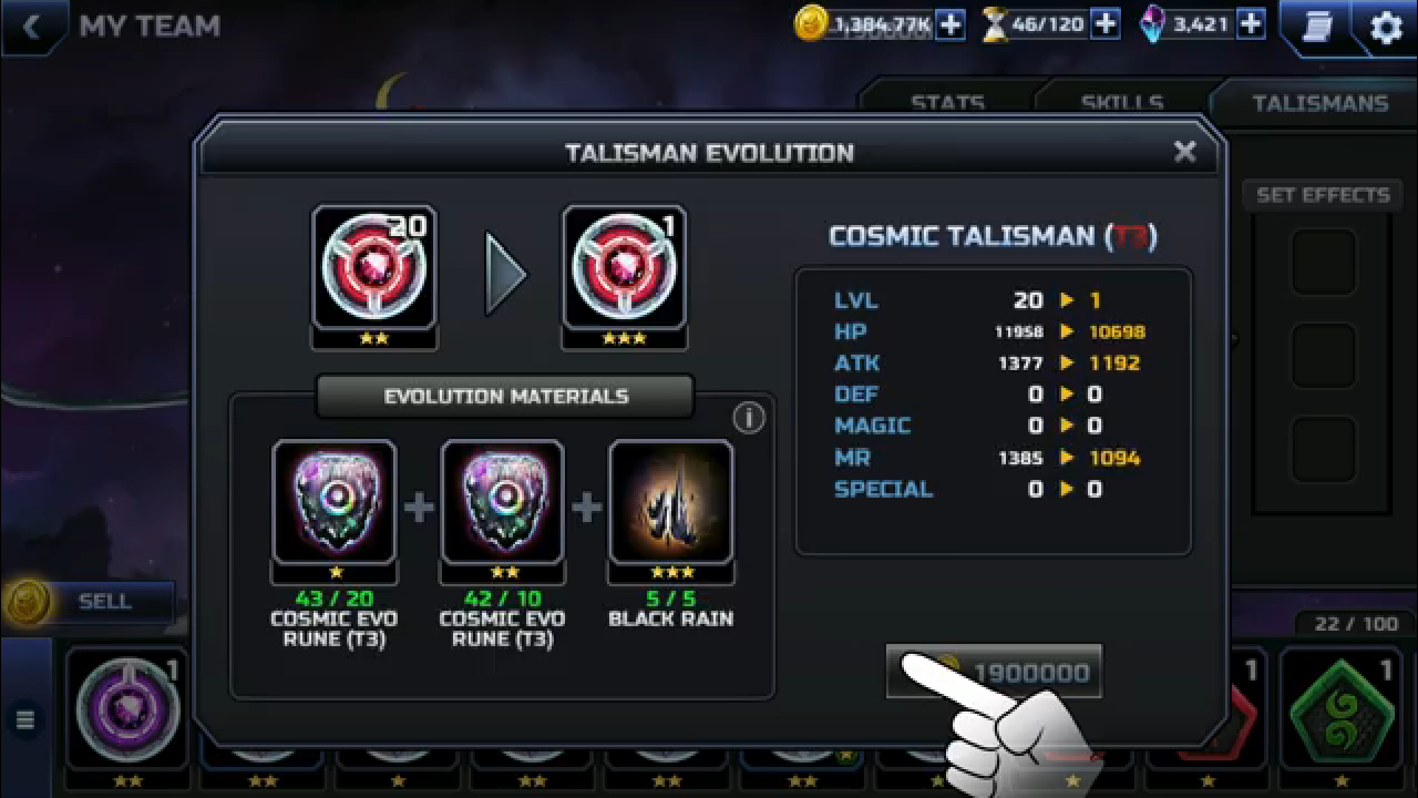 The one thing I hate the most about these talismans is total randomness. Basically we get Random talismans + random evo material = it will take years before we can evolve our talismans to level 3. They should give us players the chance to trade our materials, or at least make them easier to obtain.