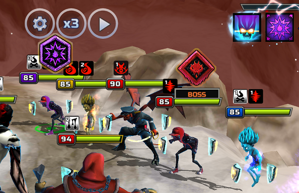 Wave 5 - This is the boss wave, and the two Green Bats have the Block passive. Same as last time, use Passive Disable or a strong multi-hit attack to break through. If left alive the Green Bats can grant themselves Invincibility, which will slow down your runs. While Beelzebub can give himself Vanish, which could slow down single-target auto-runs, the actual boss of the fight is the second blue bat. Killing the bat, once you've dealt with the Blocking green bats, will end the fight.