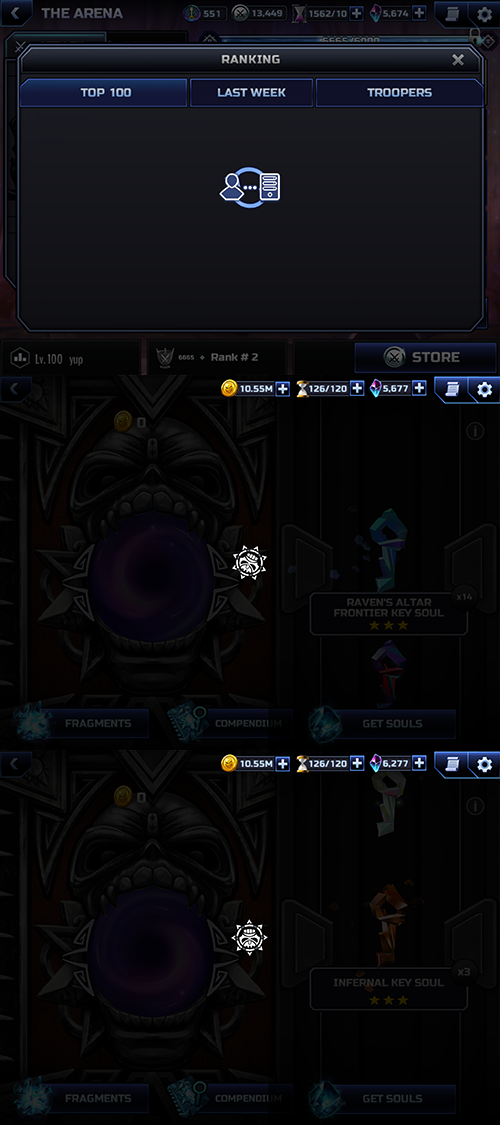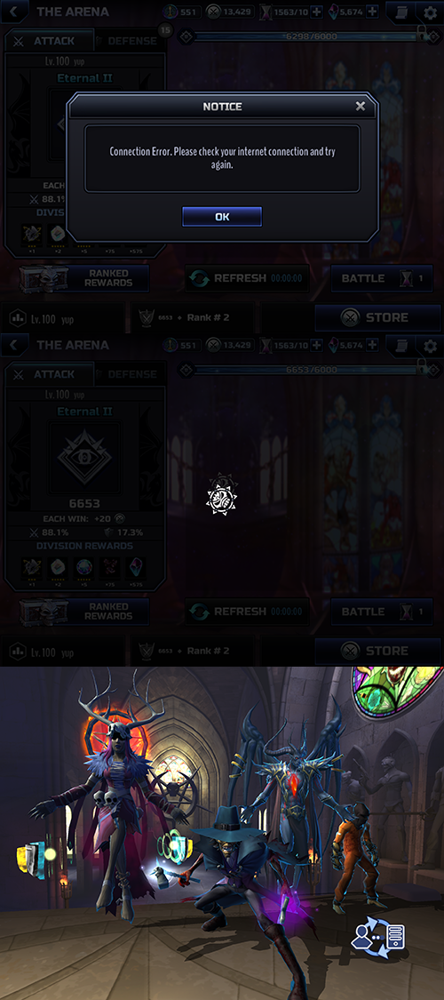 I would have placed first in the arena this week, however was locked out for SEVERAL hours on end and then PvP refused to load for me for several more hours. When it did load.. it would work horribly slow often taking 3-5 minutes to load the screens between battles -- just unplayable.. I think I got in 3 fights in over 45 minutes... terrible.