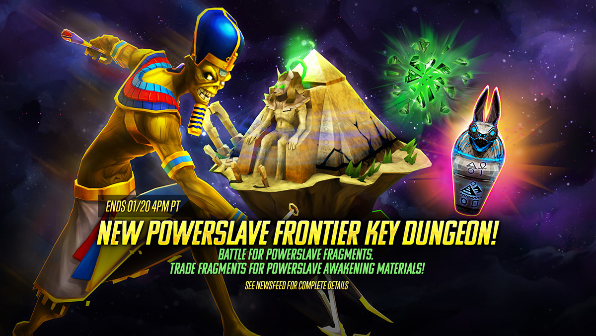 From now until January 20th at 4PM PT, complete Event Challenges in the Powerslave Frontier Dungeon to earn Powerslave Fragments, Gold, Talisman Soul Fragments and MORE!