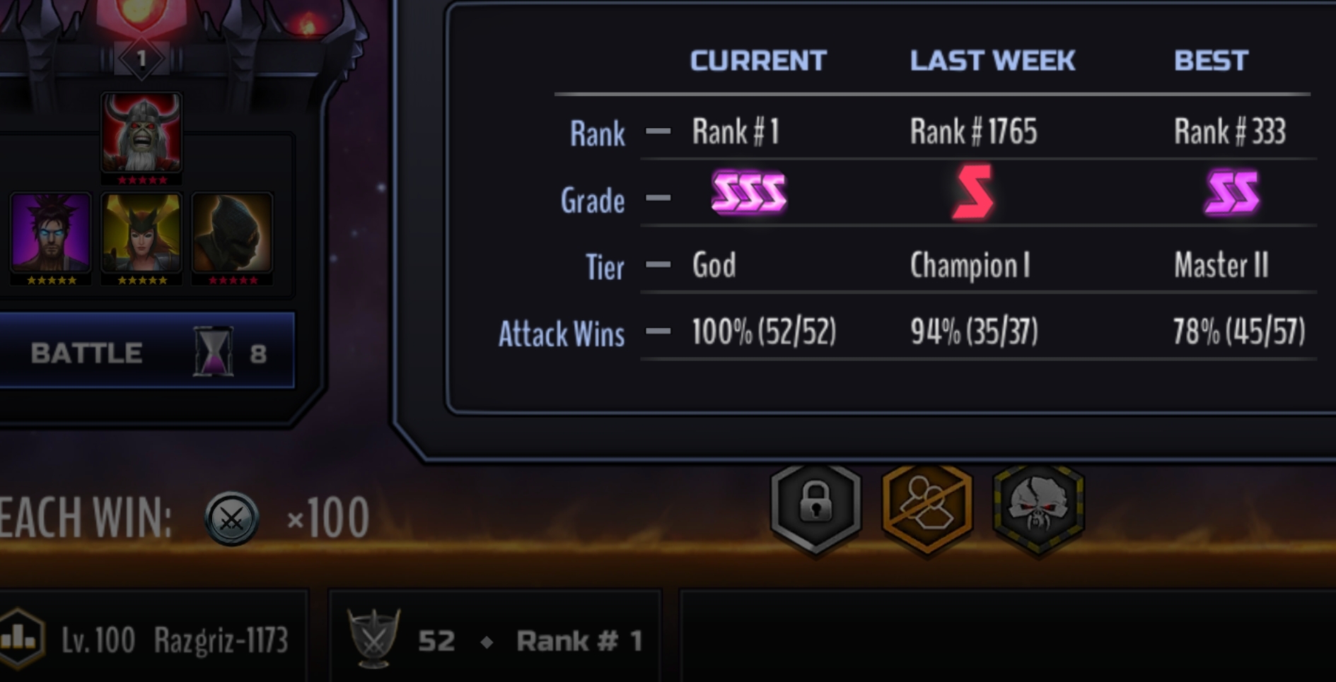 gotta say i'm extremely proud that my first time being in SSS rank/level that i have zero losses, and while i know i wont keep god rank u guys that r constantly in top 100 are beasts to do this every 2 weeks.