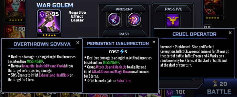 - Magus Crimean Soldier - All the Crimean Soldiers have annoying passive abilities, and the Magus variety is no exception. Every turn his passive Removes Immunity and Freezes an enemy. His abilities inflict a variety of debuffs, and his power move threatens to permanently Freeze all his enemies. Make sure you bring a way to avoid being frozen, or at the very least multiple ways to remove it quickly.