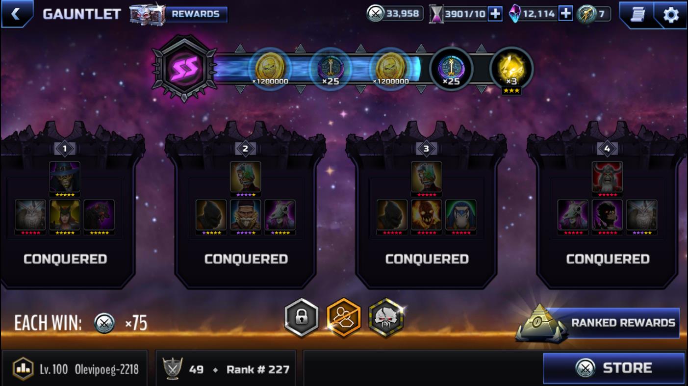 Gauntlet has definitely gotten tougher. I had Max Cyborg, Max Dark Lilith, Max Moonchild and Wrathchild as my first battle on SS rank in the round that just finished. I used to be able to get to SSS or at least partway through SS but I failed that battle with my best team and basically couldn't be bothered after that.