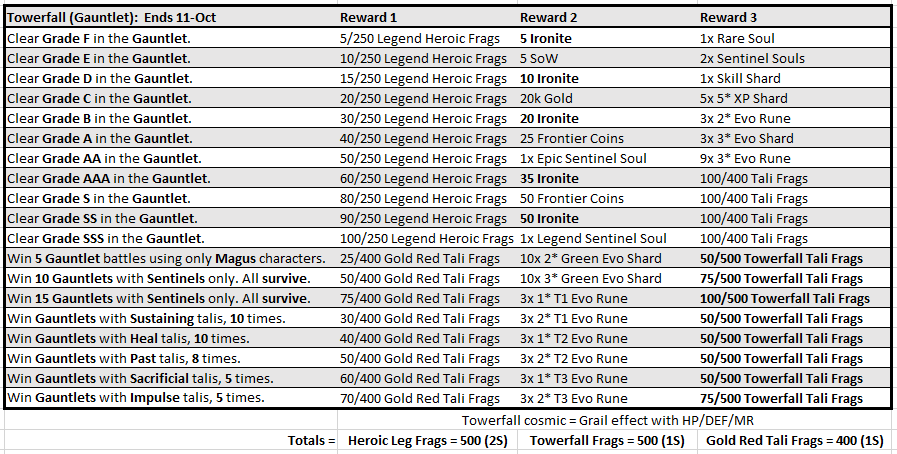 - Grab the Towerfall Cosmic Pack! Each pack contains 1 T2 Gold Cosmic Talisman with a Lycan set-effect, Cosmic XP Runes, Tier 1 Evo Runes as well as some Ironite and Gold!