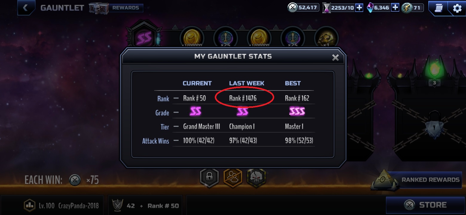 I was told by support that you can check your stats by clicking bottom left to bring them up. I did and it says last week stats tier SS. Maybe I'm not comprehending some aspect in the reward system.