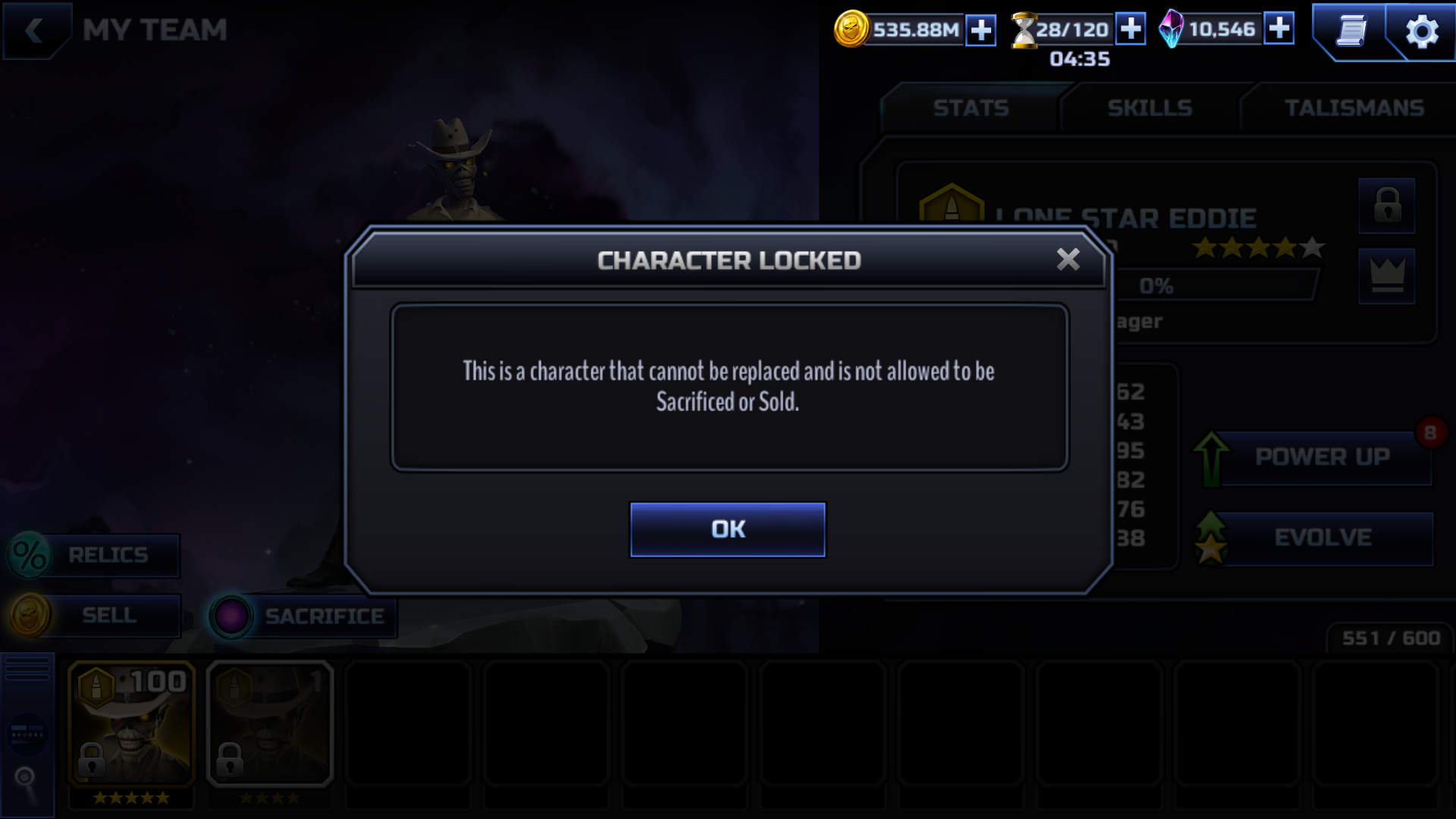 This is only going to become more of a problem with Lone Star being in the Heroic rotation now... Imagine opening 100 souls and getting a dozen of him permanently taking up space in the character list...