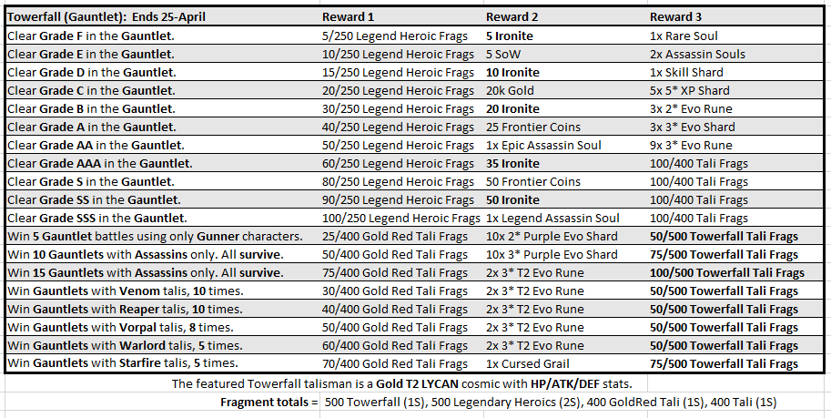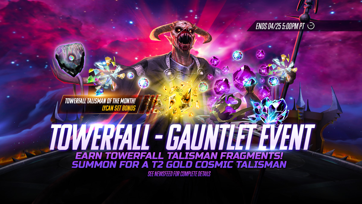 From now until April 25th at 5PM PT, complete event challenges in the Gauntlet to earn rewards such as Heroic Legendary Fragments, Assassin Souls, Ironite, Towerfall Talisman Fragments and more!