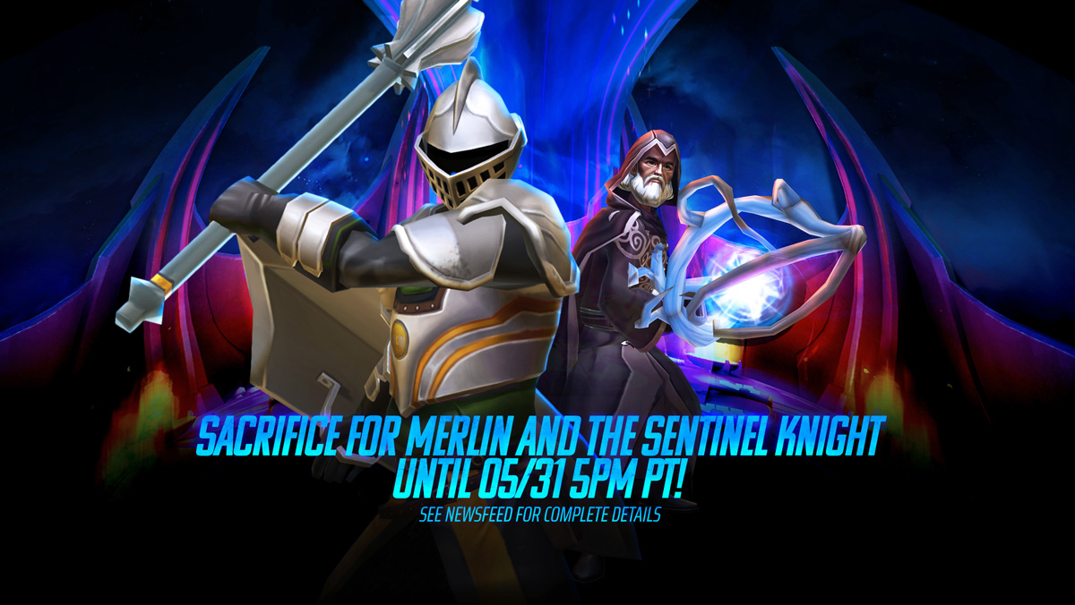 Sacrifice rewards for May 2021 feature Merlin and the Sentinel Knight!