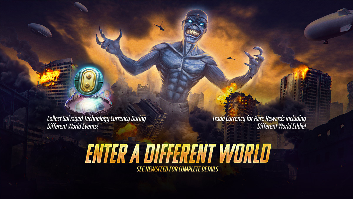 Spend your Salvaged Technology in the Event store tab to get rare rewards including Different World Eddie, Cosmic Different World Talismans and other exciting rewards!