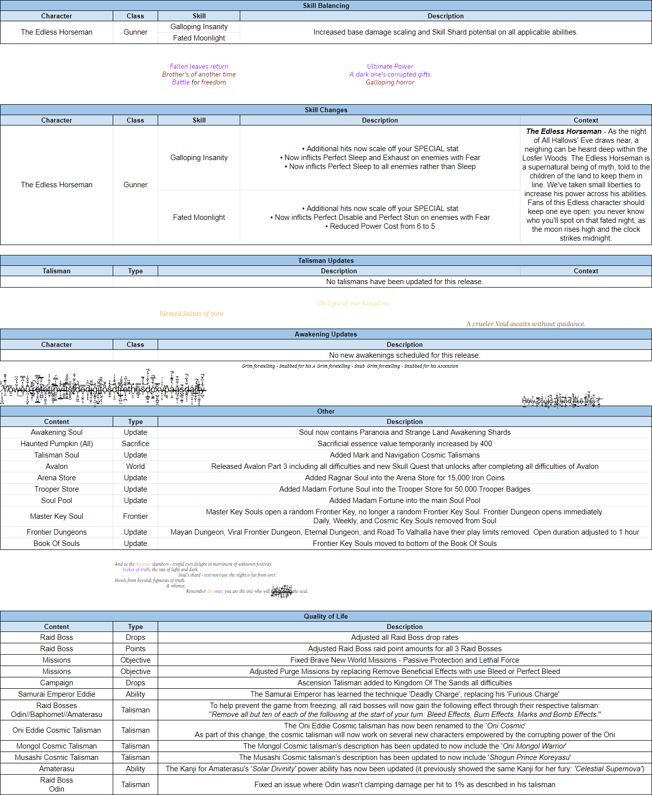 Here are the Preliminary Tuning Notes for an update coming at the end of this month! Important note: We've listed a number of quality of life fixes that you can expect in the next update. These are NOT live just yet. The quality of life changes will go live, along with the rest of the changes noted here in our next update, which is scheduled to take place in the final week of September. You can discuss the upcoming changes here.