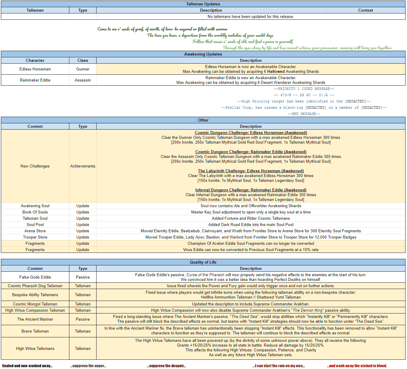 Here are the updated Tuning Notes for an update coming at the end of this month! Important note: We've listed a number of quality of life fixes that you can expect in the next update. These are NOT live just yet. The quality of life changes will go live, along with the rest of the changes noted here in our next update, which is scheduled to take place in the final week of October. You can discuss the upcoming changes here.