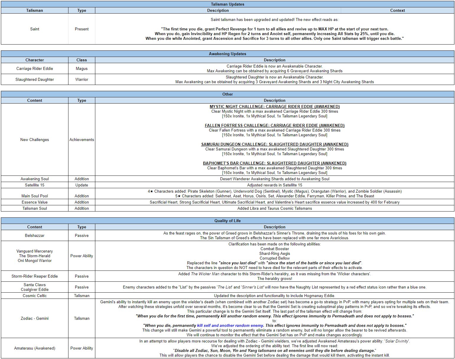 The changes listed here are NOT live just yet. The quality of life changes will go live, along with the rest of the changes noted here in our next update. You can discuss the upcoming changes here.