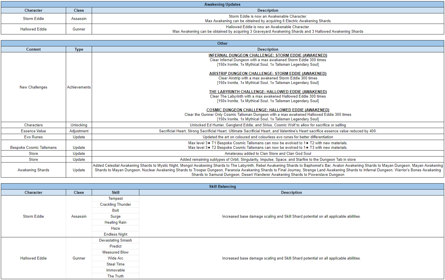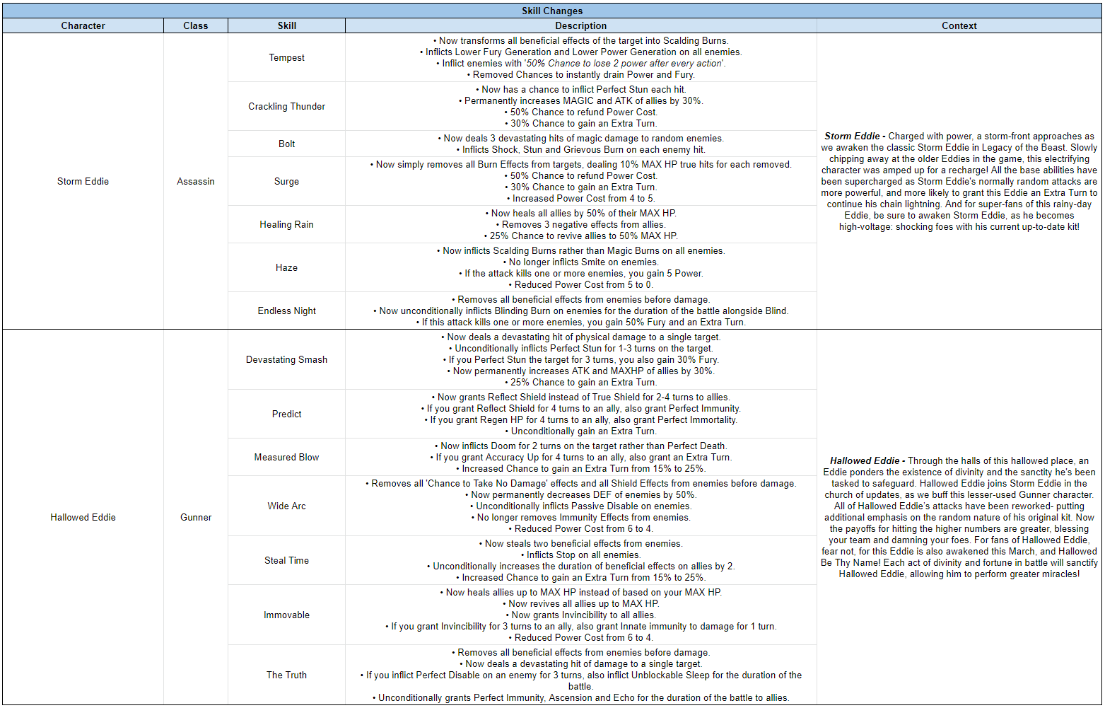 Here are the Preliminary Tuning Notes for an update coming out next week!