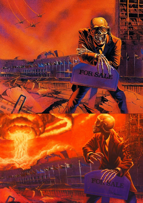 I know far too many times I, among many, have cried out for Vic Rattlehead, but "Atomic Sunset" immediately made me think of the single artwork for Peace Sells...