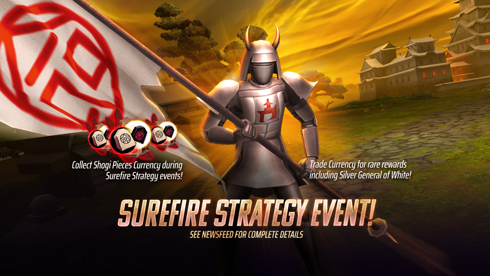 Surefire Strategy is a series of events that will run through the month of June. These events will all grant the exact same currency type - Shogi Pieces!