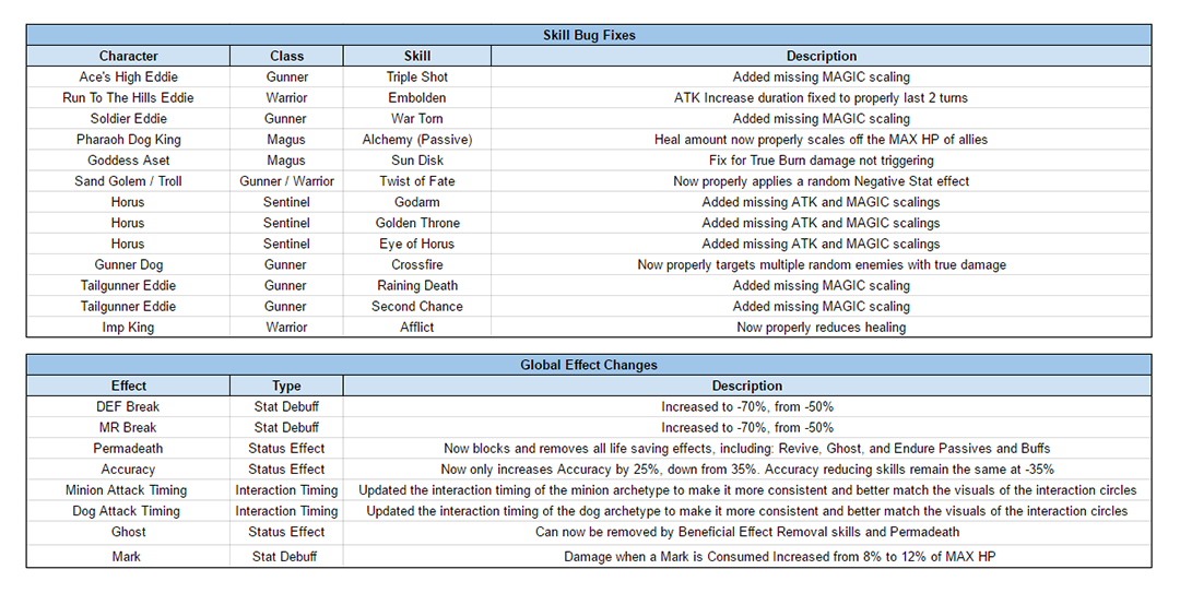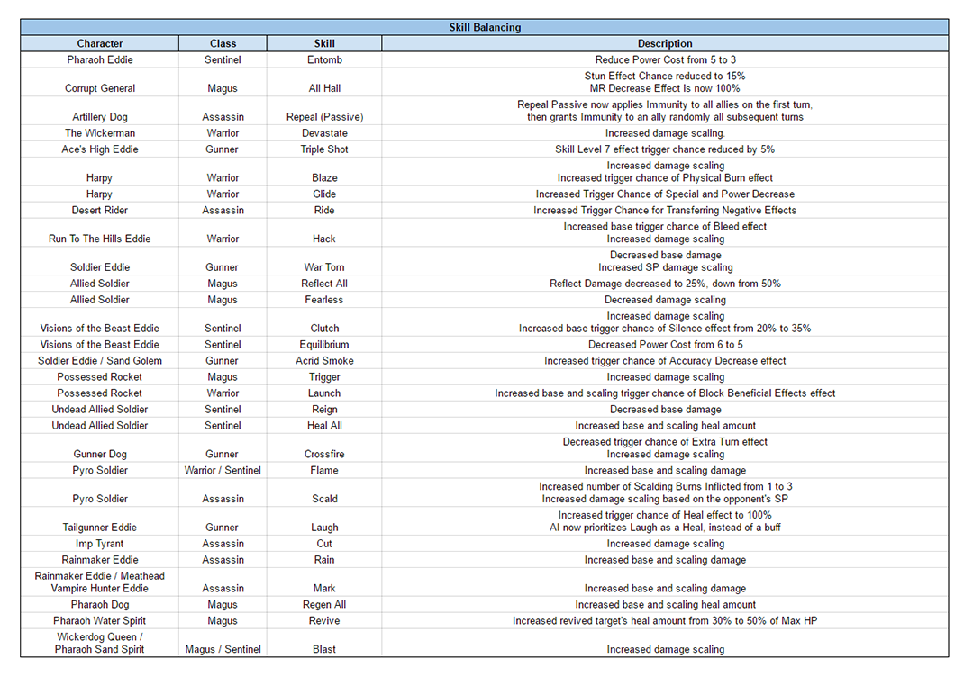 This post goes over the various changes to characters for the upcoming tuning patch.