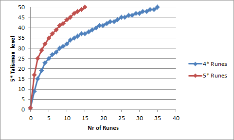 Here's the rate at which a 5* Talisman levels when given (color-matched) runes