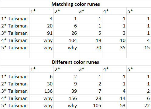 Here's how many runes you need to max out a Talisman (Talisman rank ups are NOT included here):