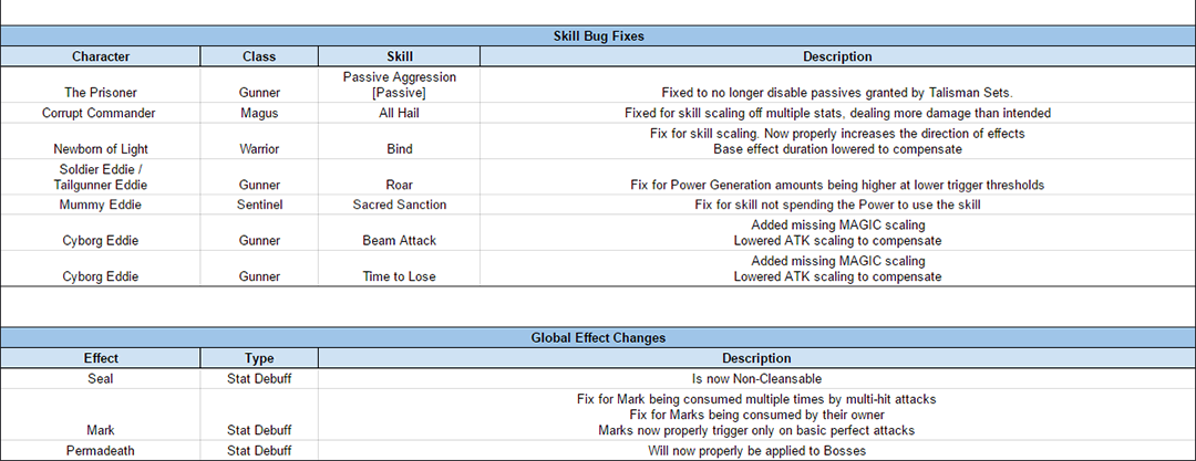 - The Help section on status effects has been expanded with more common status effects and the potency of such status effects (when they’re not tuned per skill)