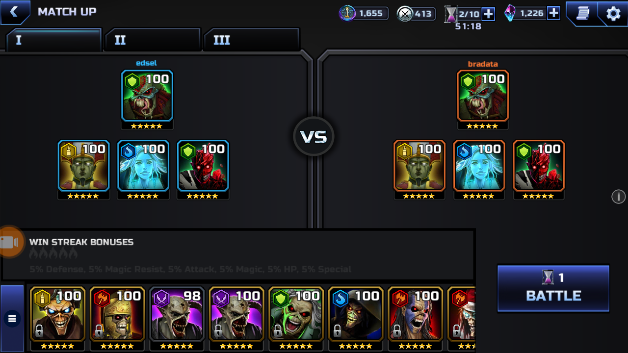 OK - last one ... I was watching TV and striving through my teams and recognized I had A Shinobi, A Lilith, Navigator and G Golden Son left - so 2x Eternal + 2x Primordial ... not a clear winner but should at least make a dent into the other team, right?