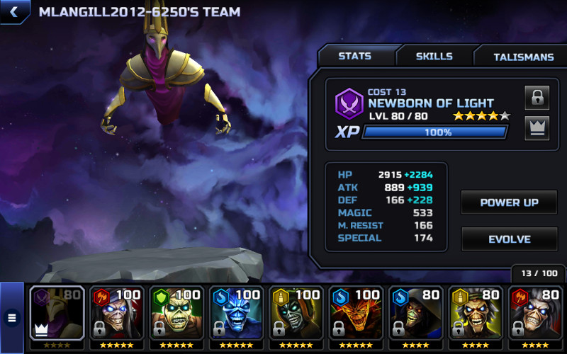 One trooper has a level 80 Newborn of Light (Assasin) that hits almost as hard as my Rainmaker (just basic attack). So I checked out if he did something special to him. To my surprise he only had 2 talismans out of 5 and no skill shards spent.