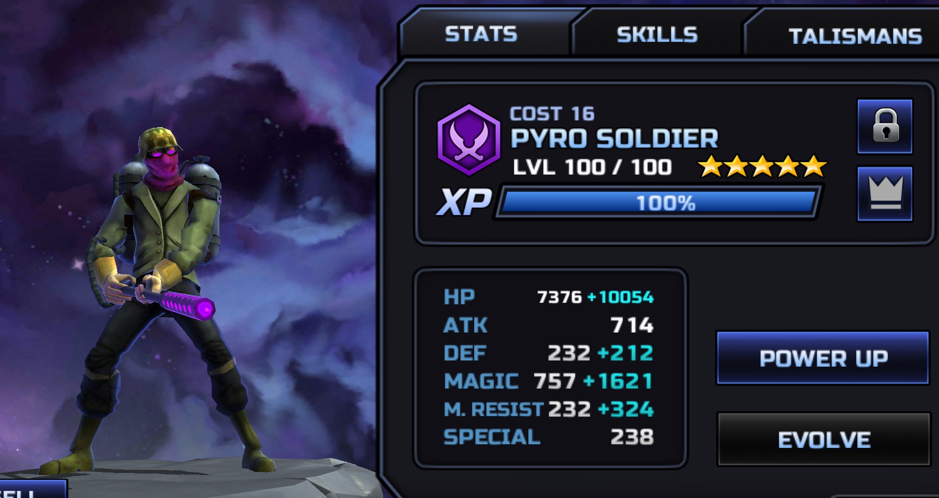 Lack of inventory made me level these two guys. Even with only 4* talis the pyro soldier could survive underworld madness game of death. The pyros new passive seem useful and i think that both got buffed (haven't really checked)