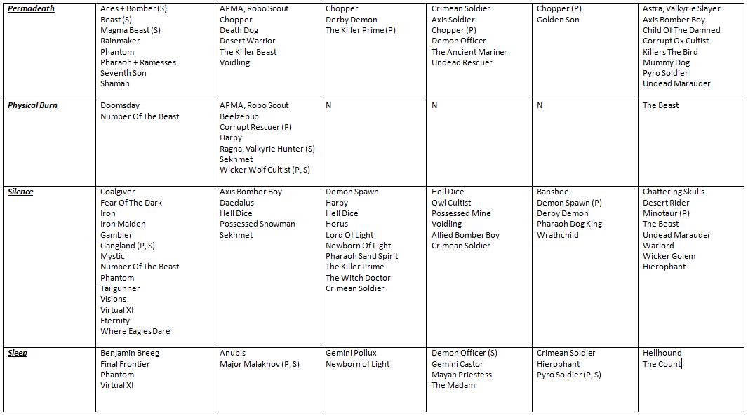 BOOK OF SOULS EVENT TABLE!