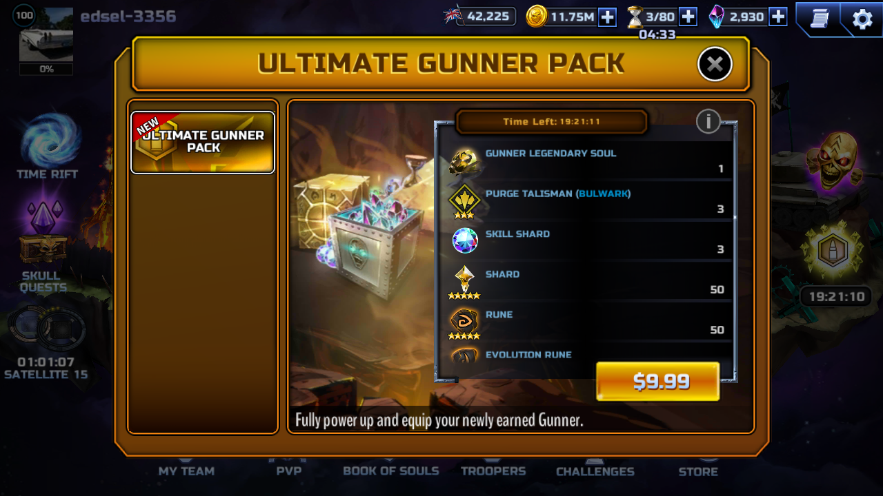 For those of you who have not received the one time only Ultimate Gunner Pack it will appear if you turn in your Cyborg Eddie Soul. So you may want to wait to turn it in for when you want to spend the 10 bucks to get a descent deal with your Cyborg.