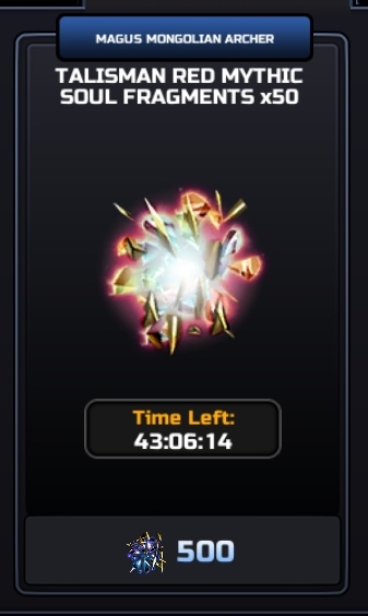 This offer is a very good deal. Who doesn't want to trade 500 cosmic Lilith fragments acquired by grinding for 6 months for 50 fragments of T3 red mythical talisman soul that would give a 15% MR boost? /s