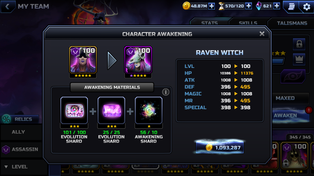 *Out of the 3 LoL keys grinding 15, I got (4) Max Awakening shards.