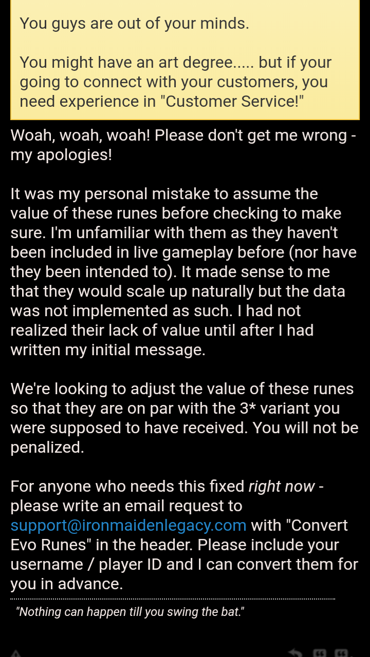 I've been putting off emailing support like Durandal_Lotb informed us to do, in order to exchange the useless (not intended for any purpose) colorless 4* & 5* talis runes received as rewards in the LoL Dungeon.