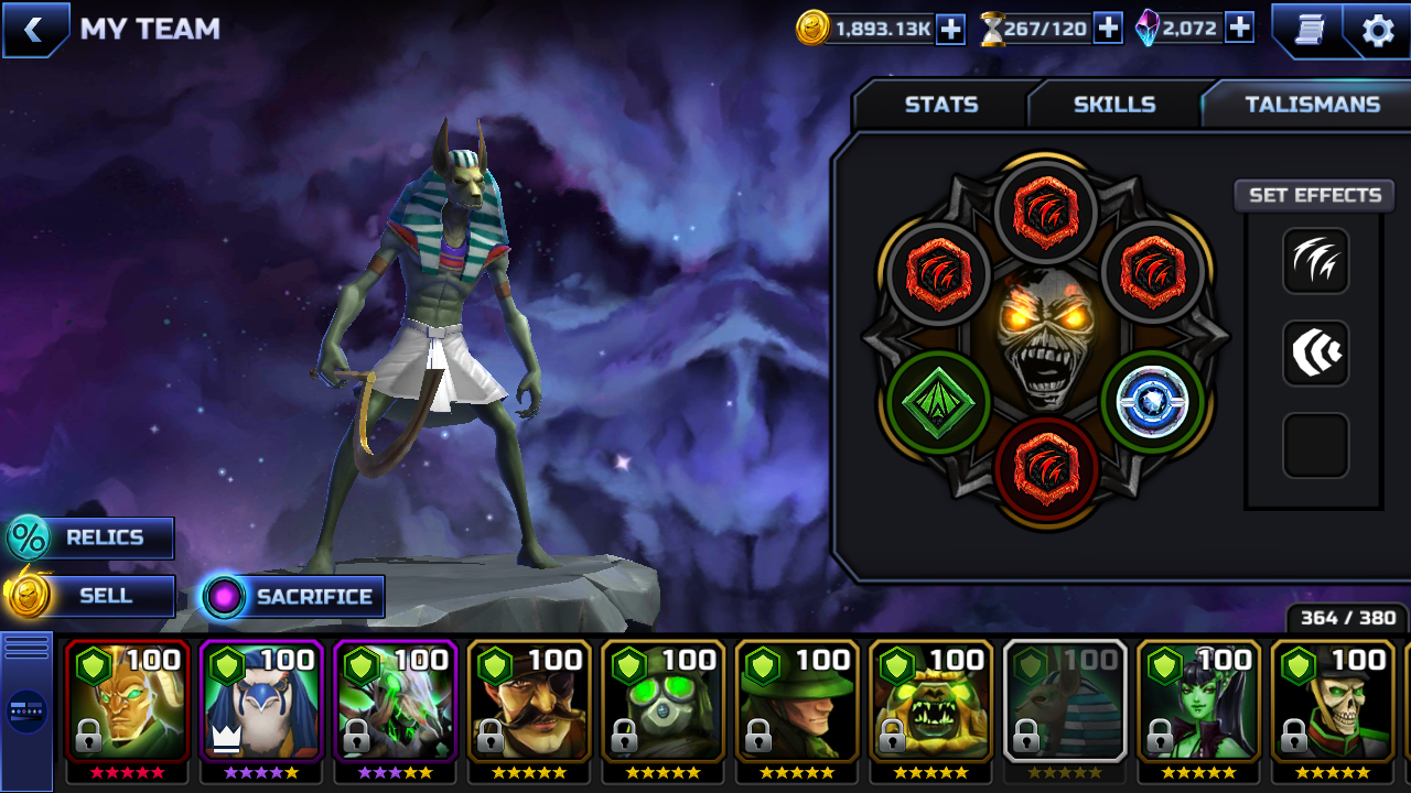 Considering to expirement with Anubis with Artifact. Anubis passively heals a random toon every round so he might power up my killer prime but in a few rounds the ennemy applies crave ... so this can work against me