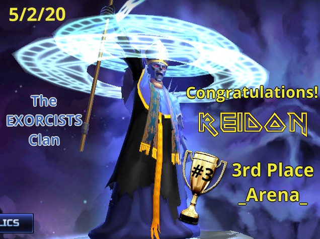 Our second member in just a little over a month since the clan started, to finish in the top 3 in arena.