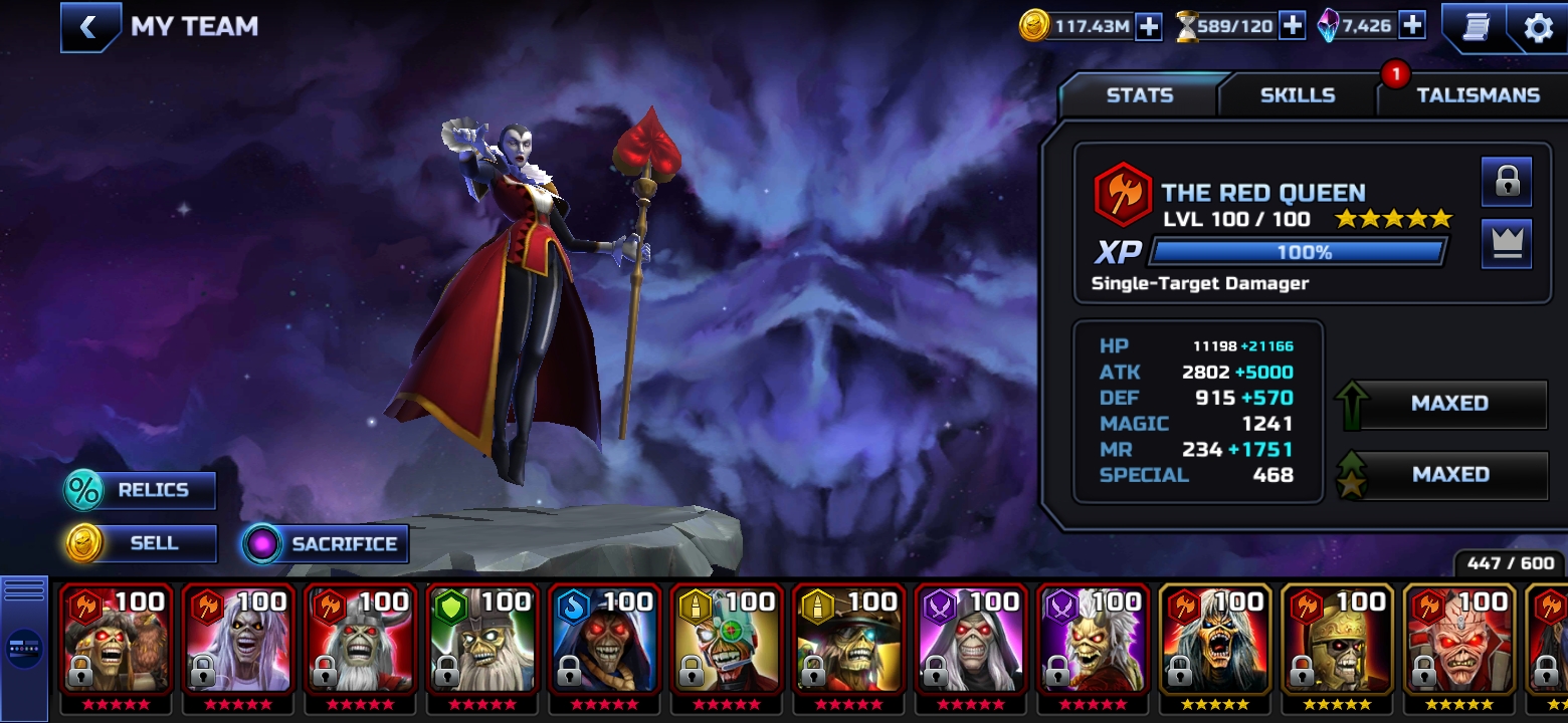 My normal test for new characters is how they cope in Lord of the Flies. I beefed Red Queen's attack as much as I could (Lust set + Red T2 Strength cosmic) and she can on-shot the level; even just the aoe True damage takes out The Killer Beast if she attacks one of the dogs directly.