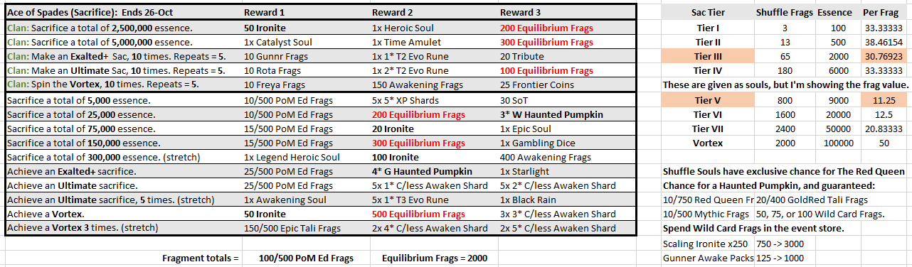 New character seems like a nice bit of fun while we wait for the Halloween dungeon, and an opportunity to make some space in our BoS. Tier V is the most efficient overall. While Tier III is the "best" for the lower tiers, I'd recommend going for Tier Is. Time consuming, but you'll end up with a decent chunk of SoW along the way.