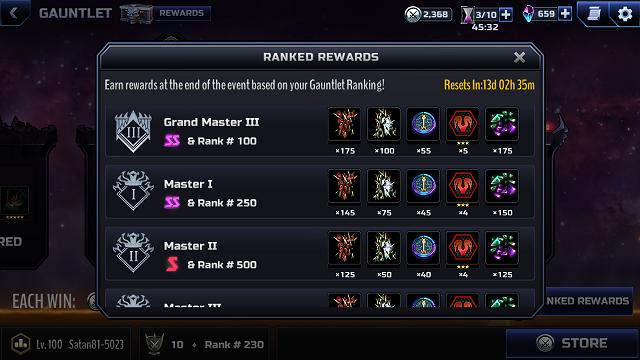 May someone screen shot the rewards for gauntlet. That would let the others who can't participate see what you may earn. Thanks.