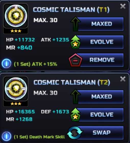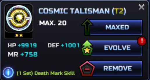white T1 Death Mark Skill 1 star (max 10) - HP 1715 - Defense 69 - MR 64