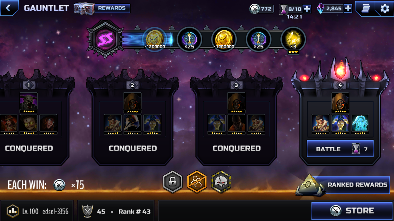 Also the teams I got were similar but not the same this week. Are we not battling the same teams through the gauntlet? I did not see Ra in any of my SS battles or GCotD.