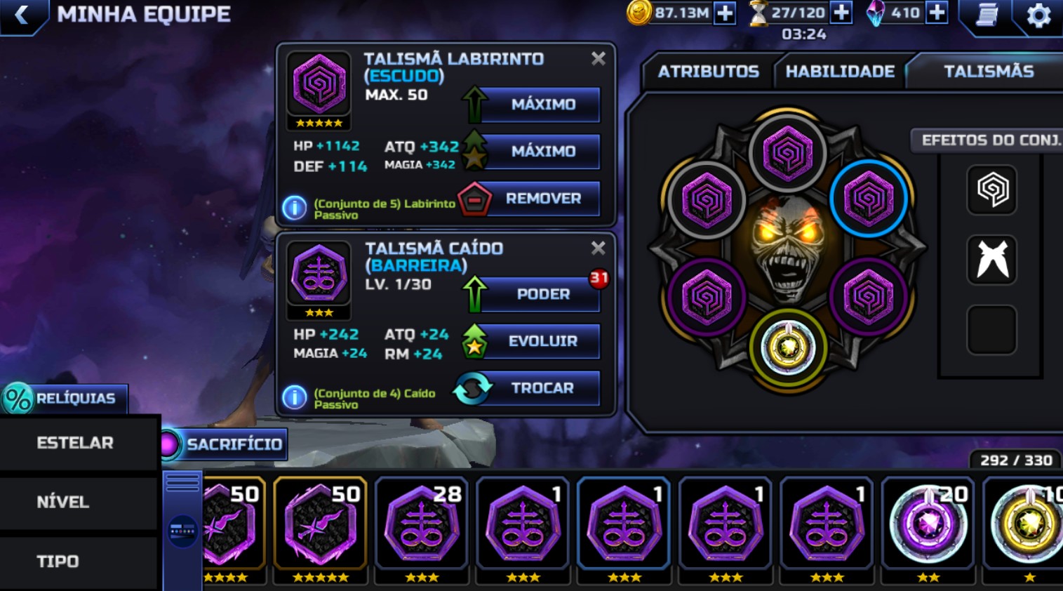 I also think the talisman configurations play some part. Lucifer's set up ensures he can't wear any 5 or 6 set purples...and there aren't any real 4 sets of purple (other than Reaper which he does with his abilities). I'm still kind of exploring Lucifer given this factor. I have a bunch of comics so its more WHICH 3 set of purples work well with which cosmic.. or which 2 purple 2-sets... etc. Once Lucifer is fully awakened it's not as imperative since he's 99% immune to damage, unless stunned. :)