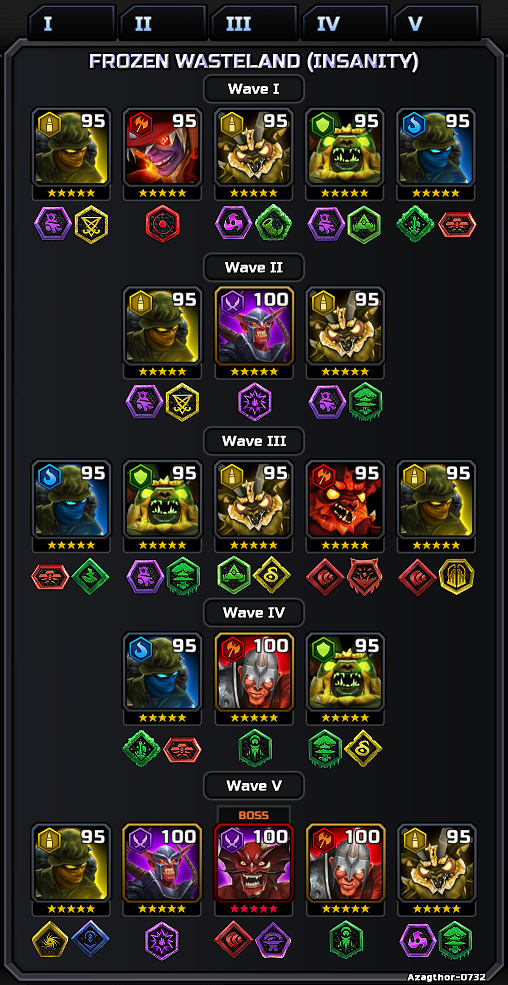 Have updated the rewards section. Red, Green, Purple evo shards, Cosmic evo runes, and SoW are the main reason you'd do this dungeon. Not great reasons, but still reasons. If the SoT costs were reduced, it would be a different story. 8SoT for Hard, 12SoT for Madness, putting it inline event dungeons, would make the Frozen Wasteland more appealing.