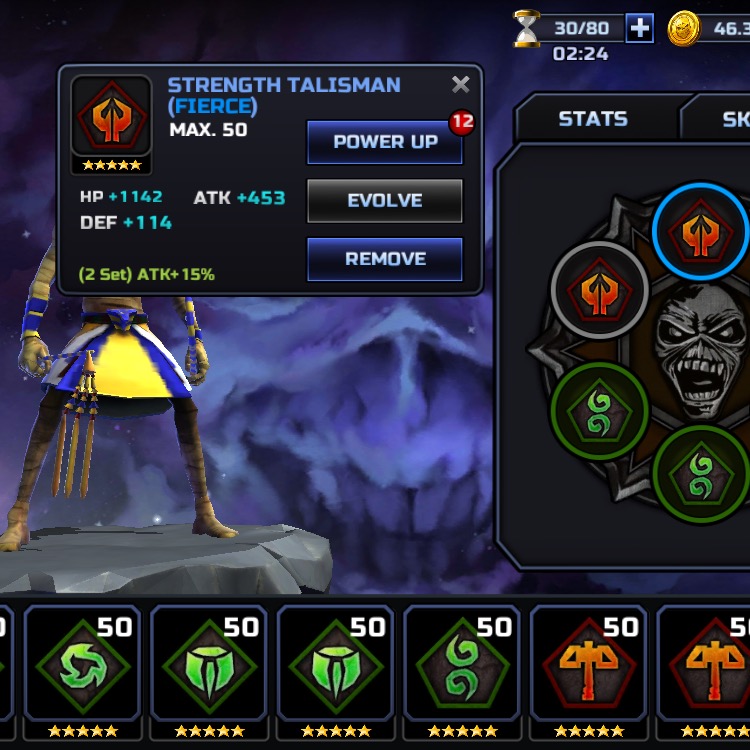 From what I see on my end, my max level overwhelming talisman is showing a HP boost of 4527, and my max level fierce talisman is showing an ATK boost of 453. That has everything to do with it. Looks like the game just got a whole lot more challenging and auto farming Game of Death is no longer an option. I'm okay with that, as long as we can target what materials we want to farm more easily, and the drop rates are improved. This is probably how the game was supposed to be in the first place, it makes more sense.