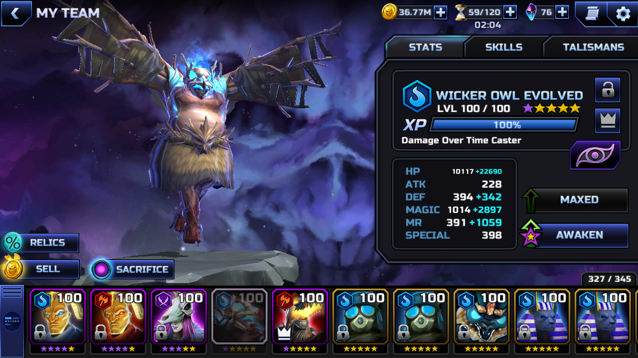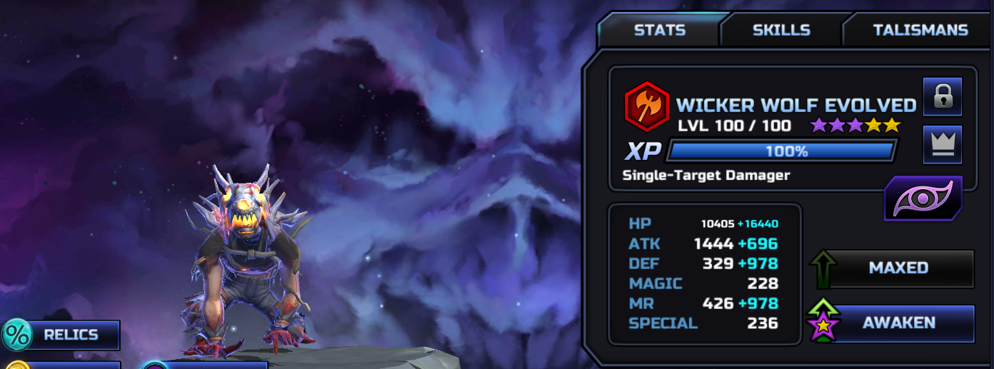 I have Wicker Wolf Evolved and Wicker Owl Evolved both at level 6.... I will max them when done awakening the LoL's.