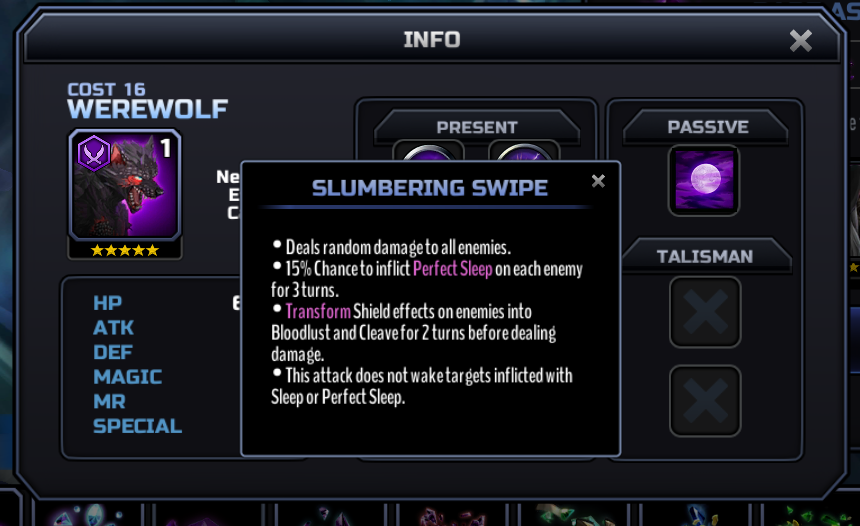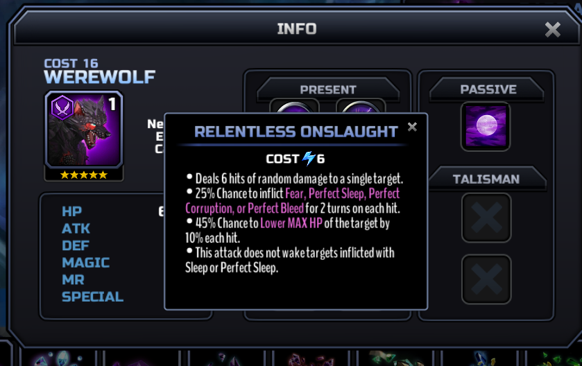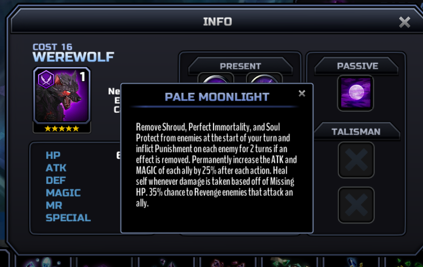 You could be right about Gunner Werewolf. He might be the "LoL grind for frags" toon, if not him then a Warrior werewolf. I did see a 5* Assassin Werewolf in BoS.... he's probably going to be decent. The other Werewolves (Mag./Sent.) were both 4*.