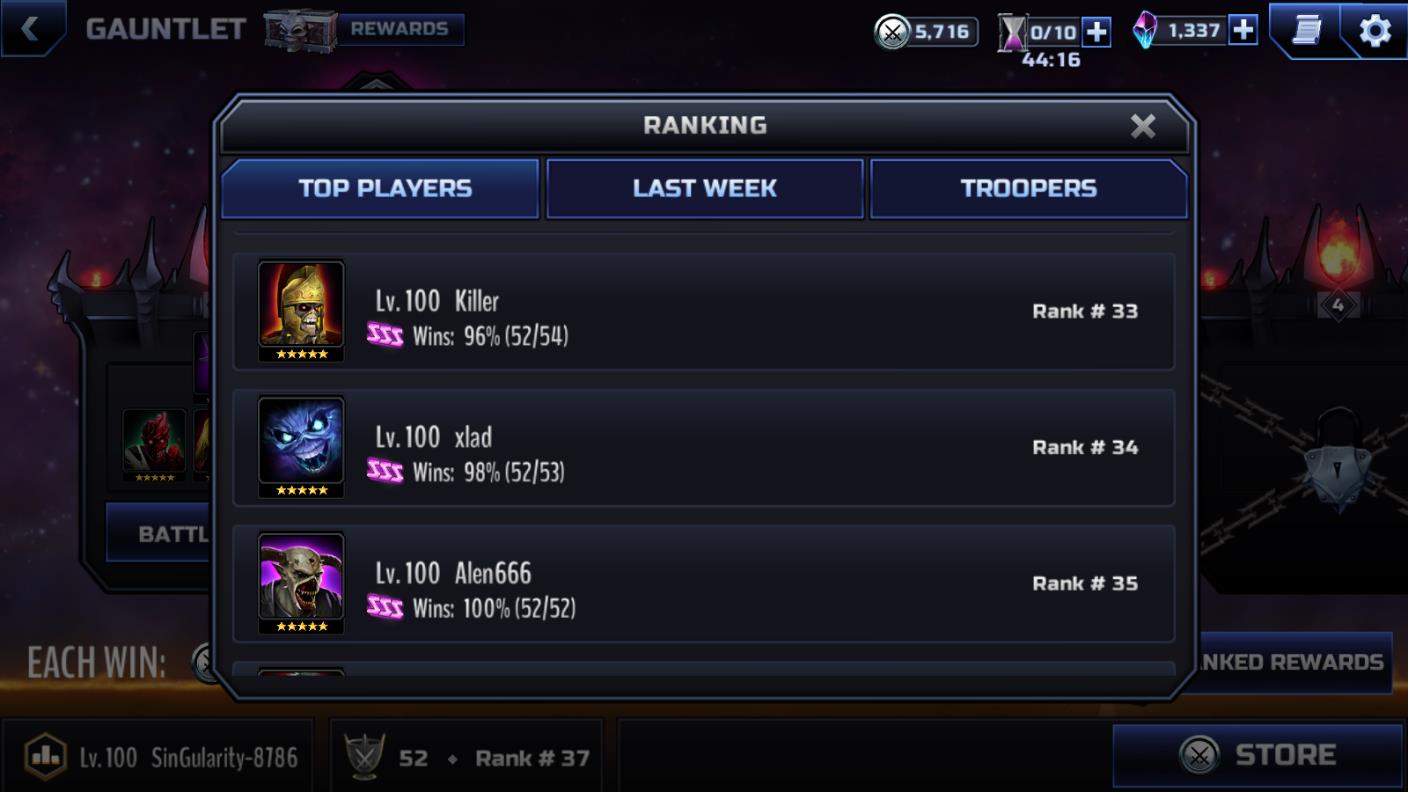 AAA is brutal for me lately. This time most of the teams are full of maxed out liliths who do tons of damage. I have a pretty deep bench of magus characters but I use most of the viable ones pretty quickly. I'm still on track to get the Ancient Mariner by the end of the season I hope (and hopefully the devs fix that weird bug that gives the wrong gauntlet rewards).