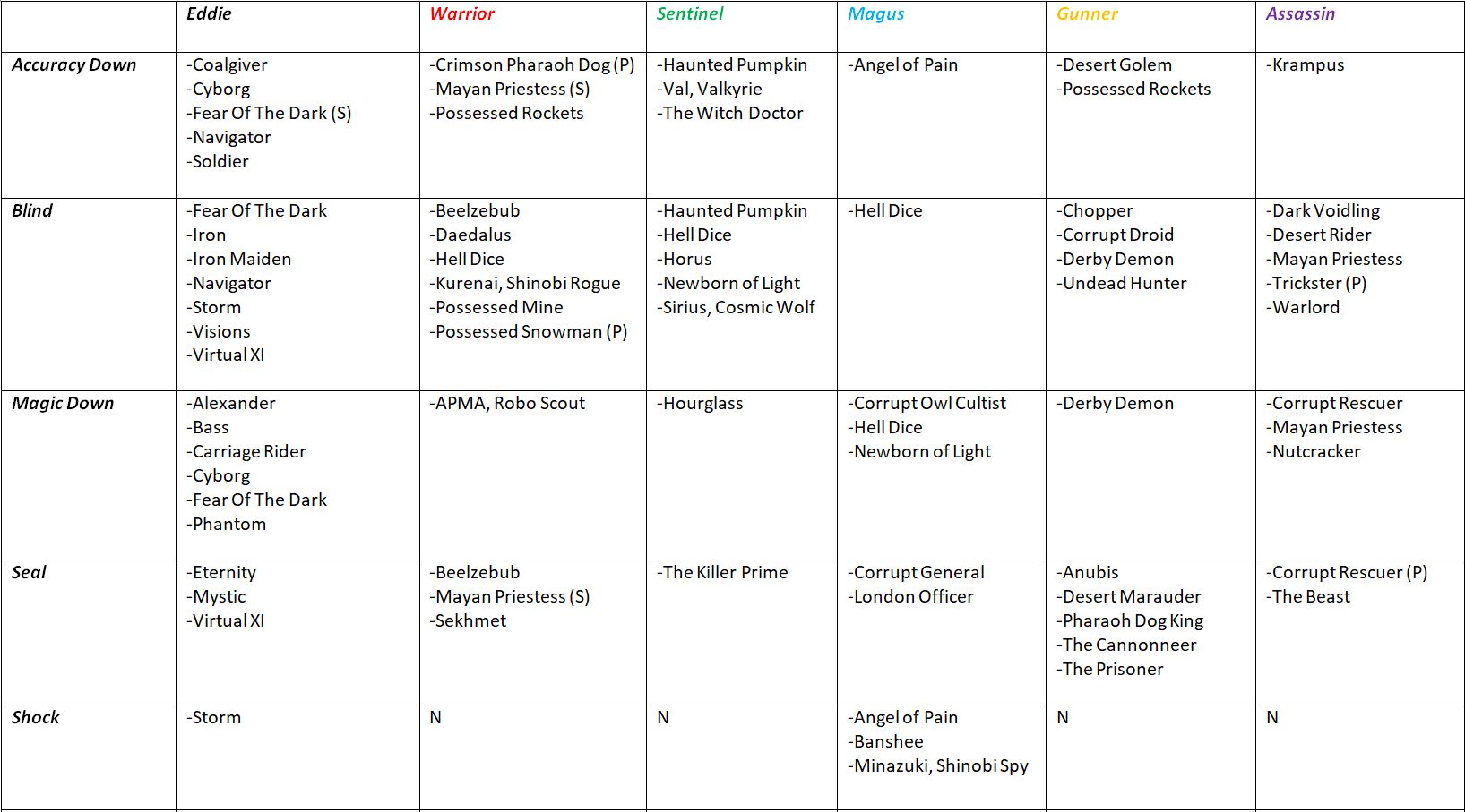 Hey guys, got the table of characters all done to help out if you're struggling. Not sure if anyone's already made one yet, if so I apologise for clogging up the thread lol. Hope it helps!