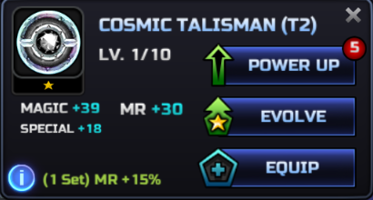 The thing that bothers me most to be honest, is that you can't tell what the augment is until you tap the talisman. Not even on teh pop up reward screen.. you HAVE to go to My Team.. and find it to see what the augment is. I know that if I want an explosion set.. I need to look at red talismans.. if I want predator.. I need to look at blues, etc.. can't do that with Cosmics. you have to tap each and every one. - on a character or not. And.... if I KNOW I have a T3 with X augment somewhere.. I have to tap all 300+ characters to find it - or at least as many as it takes to find.