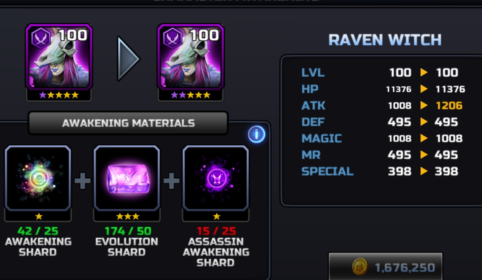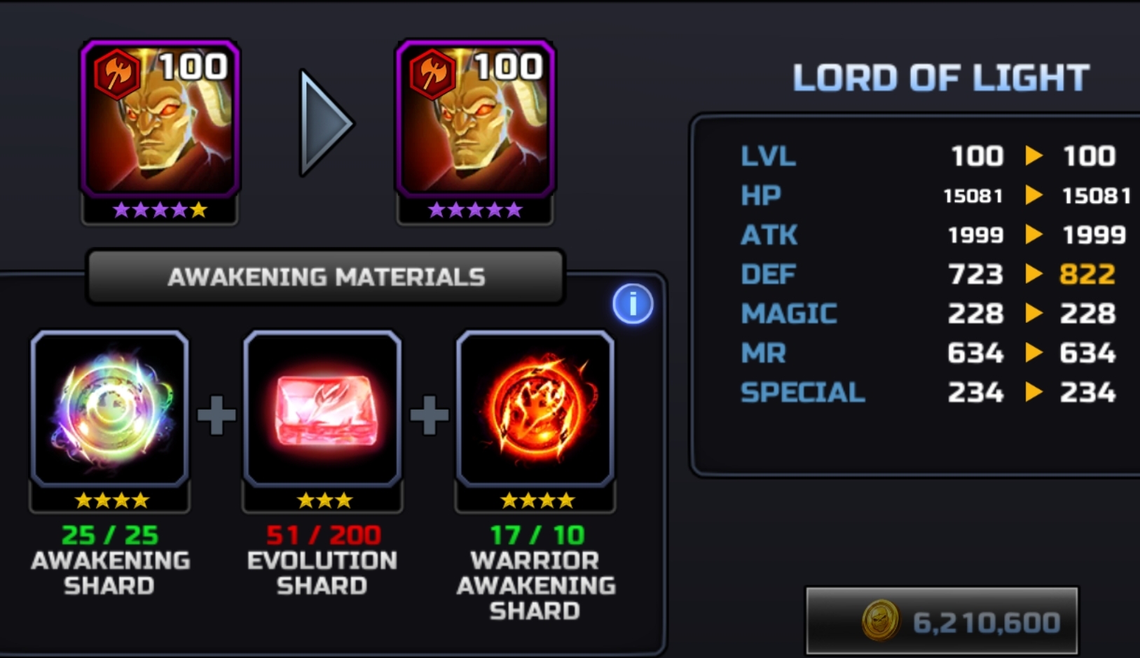 Spending all your shards to awaken one level vs saving for toons acquired is hard. Instant results vs long term goals is always a trade off. The maniacs who have all the maxed awakenables have either played a long time and had stockpiled resources or spent some real money to earn them. That also goes with investing lots of play time.
