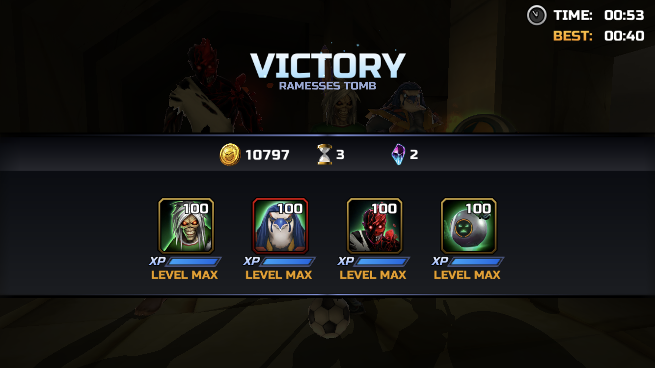 I'm on track to get my 150 wins, with two of the talisman-wearing achievements, which will let me get both T1s. The 'nerfed' dungeon is still fairly tricky, but at least it is doable for me now. Can't get Annubis to work, but can hit in all the other achievement characters, and manage a 2-3min time. Not 100% safe though, Horus loves stealing the fury from Football Eddie which occasionally means the Desert Sniper in the 2nd wave gets to keep his Shroud and can cause some real trouble.