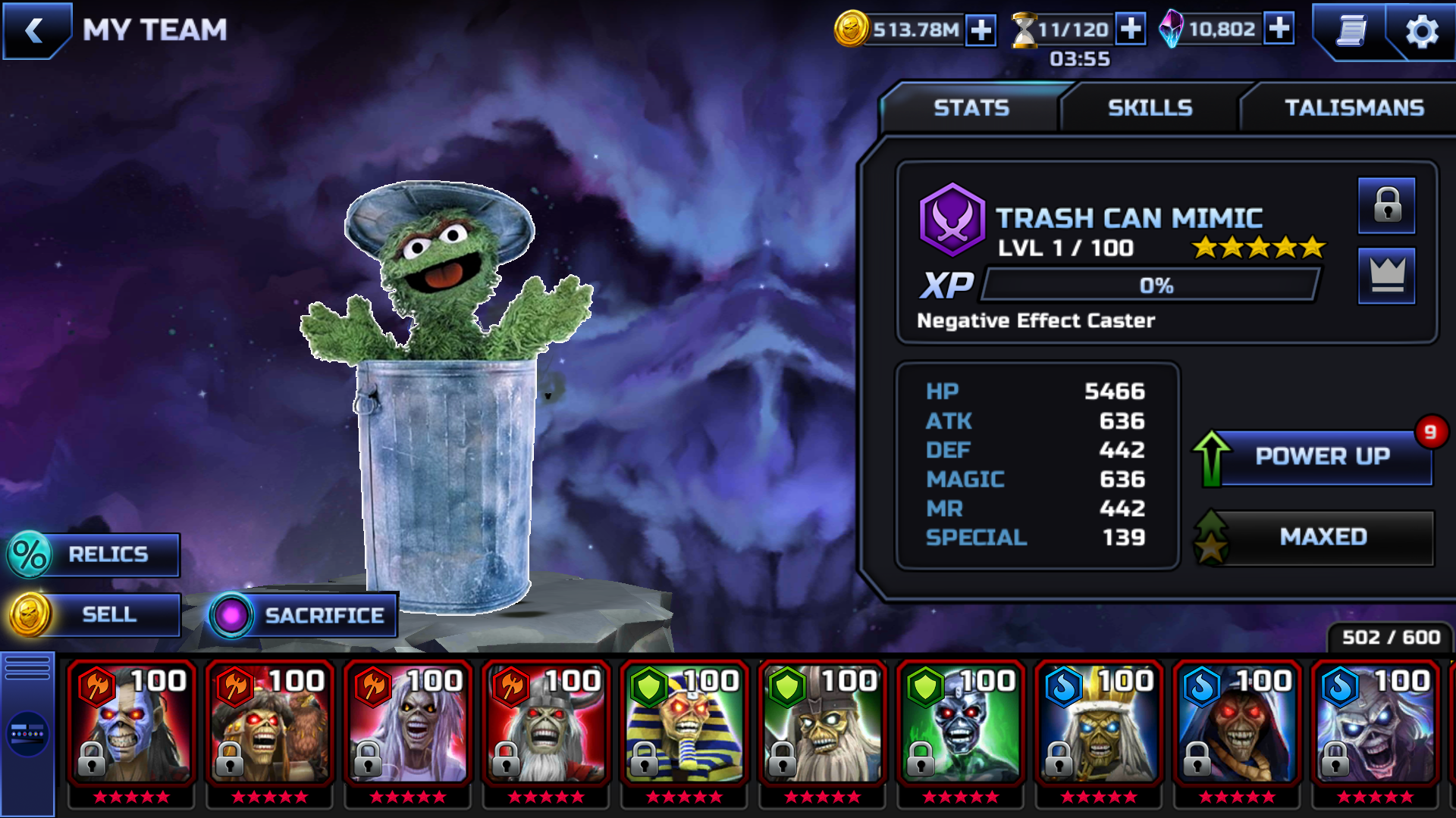 my inventory after a sacrifice event