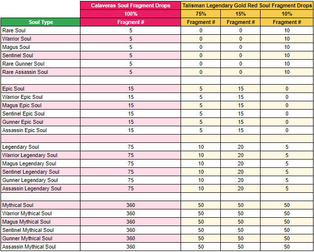 **Note - Talisman Souls will NOT give Calaveras Fragments during this event: